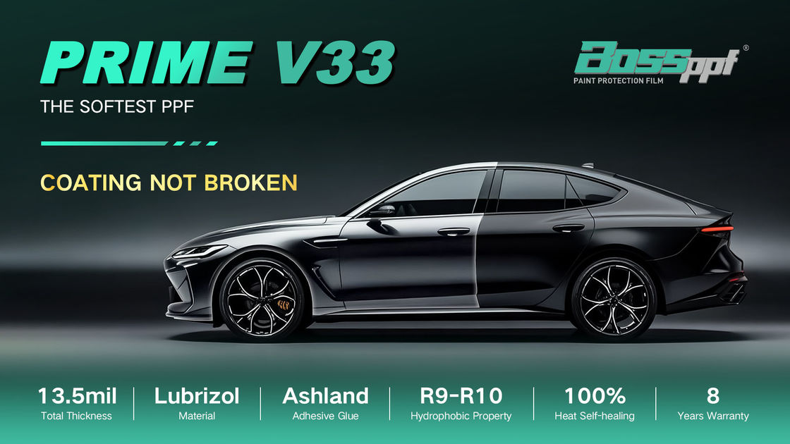 প্রাইম ভি৩৩ ১৩.৫ মিলিমিটার টিপিইউ কার পেইন্ট প্রোটেকশন ফিল্ম উচ্চতর উচ্চ-গ্লস, অ্যান্টি-স্ক্র্যাচ সুরক্ষা প্রদান করে যা দীর্ঘস্থায়ী স্থায়িত্বের সাথে ৮ বছরের সীমিত ওয়ারেন্টি দ্বারা সমর্থিত।